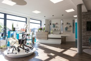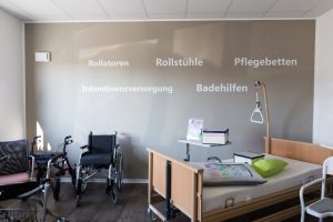 Reha • Krankenbetten und Einlegerahmen • Hilfen für Bad und Toilette • Gehstöcke • Rollatoren • Therapiegeräte • Rollstühle Orthopädie • Orthesen • Prothesen • Schuheinlagen • Mieder Homecare • Versorgung von Dekubitus • Versorgung mit Stoma-Artikeln • Hilfsmittel für Inkontinenz • Wundversorgung Sanitätshaus • Bandagen • Rundstrickversorgung • Flachstrickversorgung • Reisestrümpfe • Pflegeprodukte Brustprothetik • Dessous • Bademoden (auch für große Größen) • Nachtwäsche • Unterwäsche • Schwimmprothesen